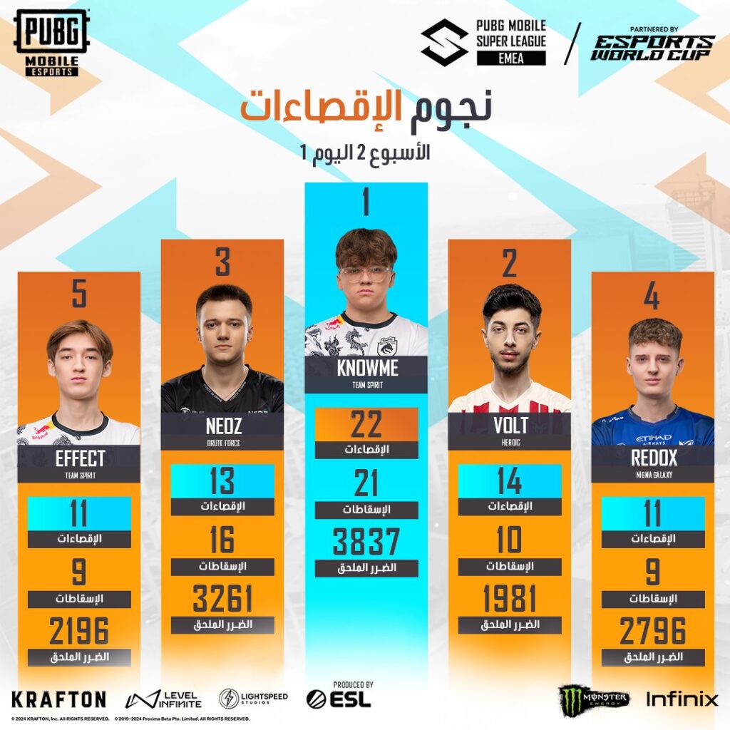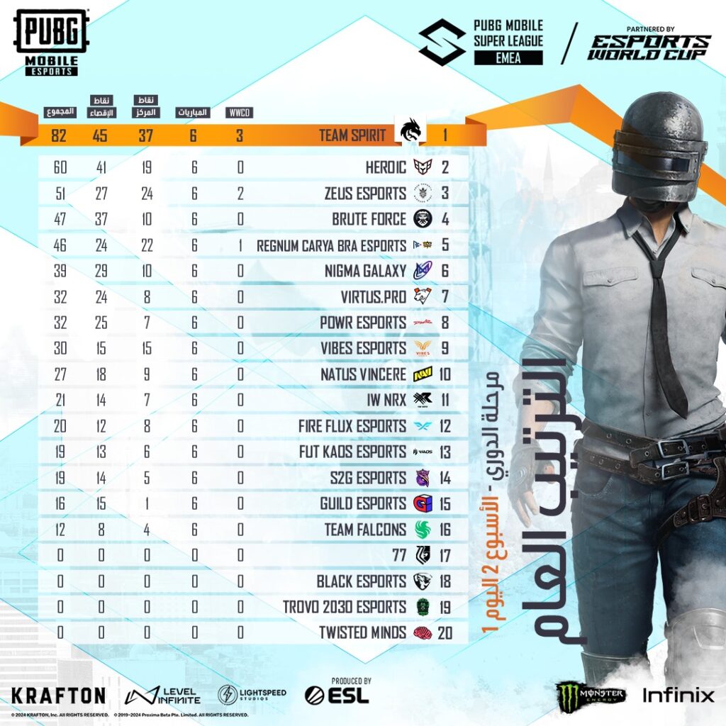 ومع إستمرار المنافسات في بطولة PUBG Mobile Super League EMEA، يبقى السؤال مطروحاً: هل ستتمكن الفرق المتأخرة من العودة والمنافسة على المراكز الأولى؟ أم سيحافظ المتصدرون على تفوقهم حتى النهاية؟ الأيام القادمة ستكون حاسمة، وسنشهد المزيد من الإثارة والتشويق في هذه البطولة الرائعة.