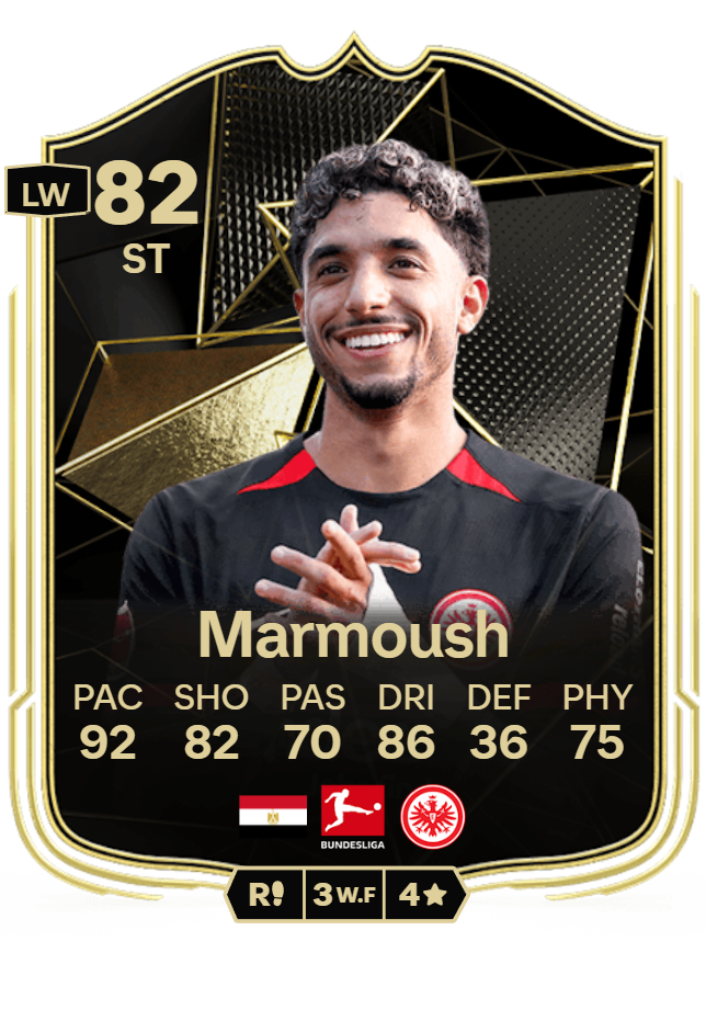 عمر مرموش، اللاعب المصري المحترف الذي يلعب في مركز الهجوم لنادي فرانكفورت الألماني في الدوري الألماني (البوندسليغا)، يواصل إثارة اهتمام عشاق لعبة FC25 ببطاقته المميزة التي تحمل تقييمًا قويًا وقدرات هجومية مبهرة.