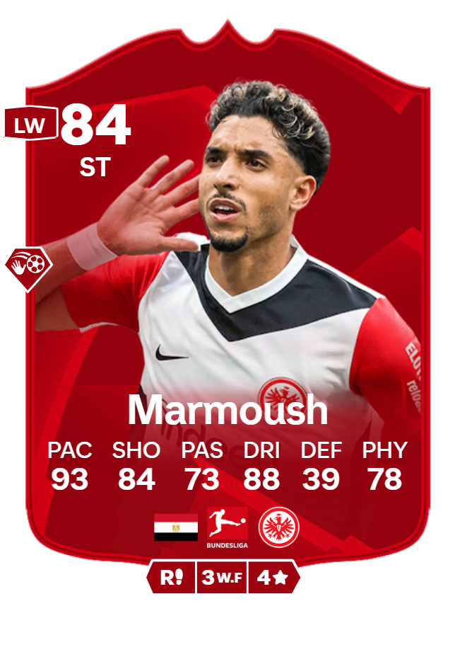 يمتلك مرموش 3 بطاقات خاصة أخرى بتقييمات تتراوح بين 79 و84، وتُعد أفضل كيمياء له هي “Basic” مما يعزز من أدائه الشامل داخل اللعبة.